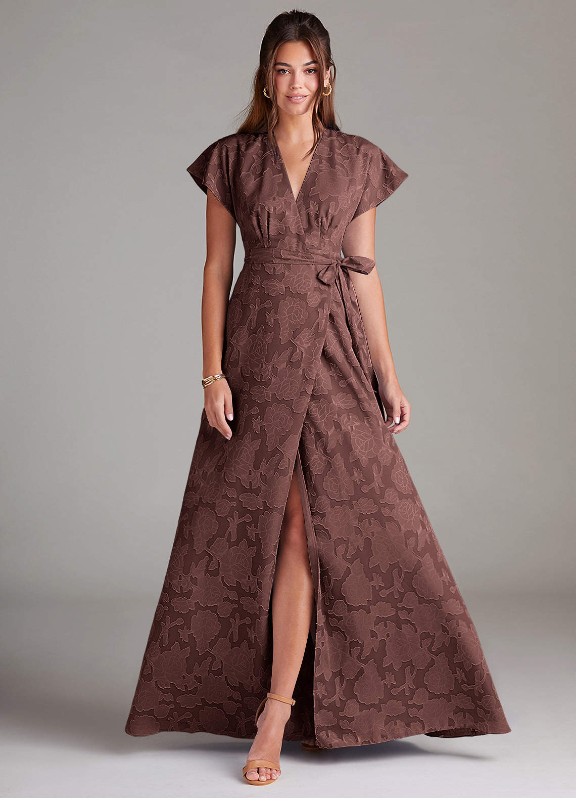 Robe Trapèze en Blumen-Burnout Plissée Expresso