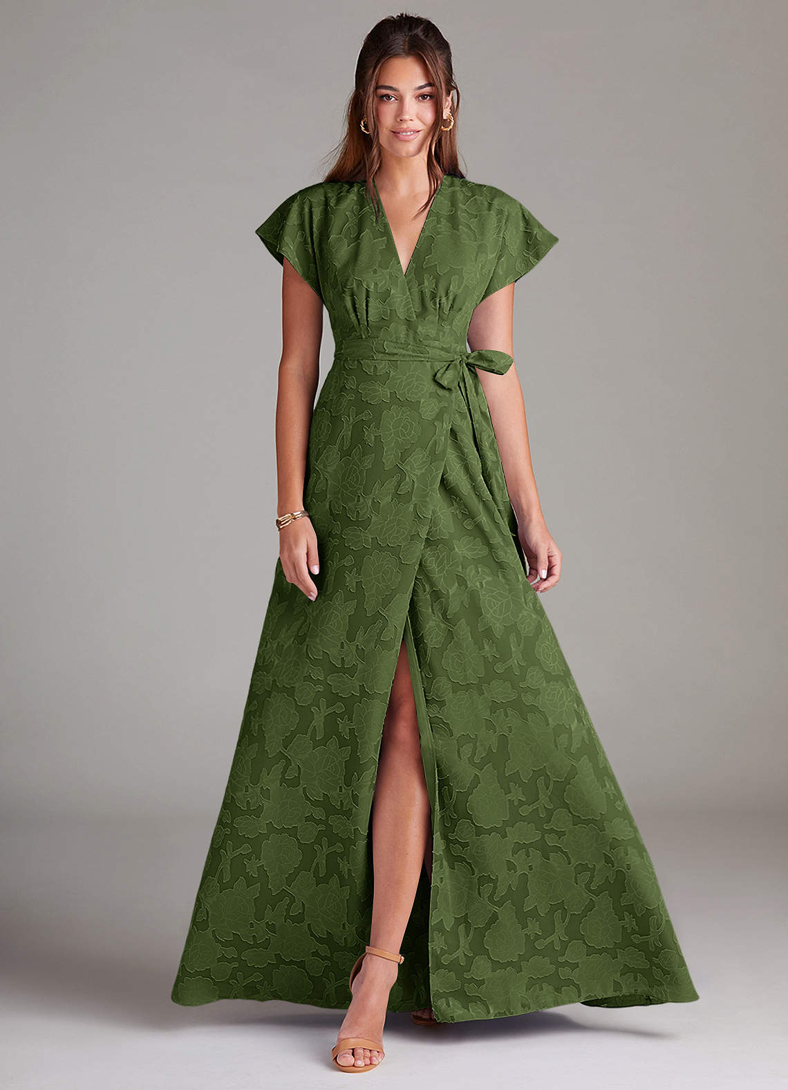 Robe Trapèze en Blumen-Burnout Plissée Olive