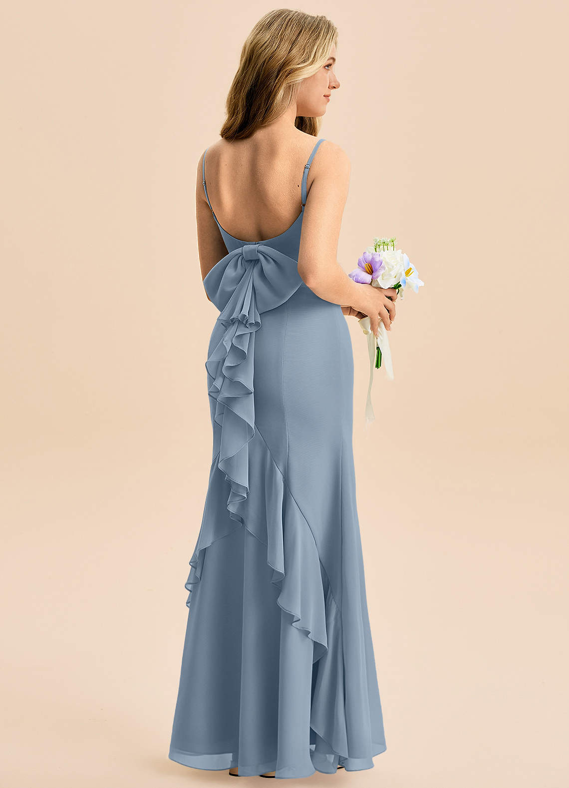 Robe Sirène en Mousseline de soie Arc Bleu Poussiéreux