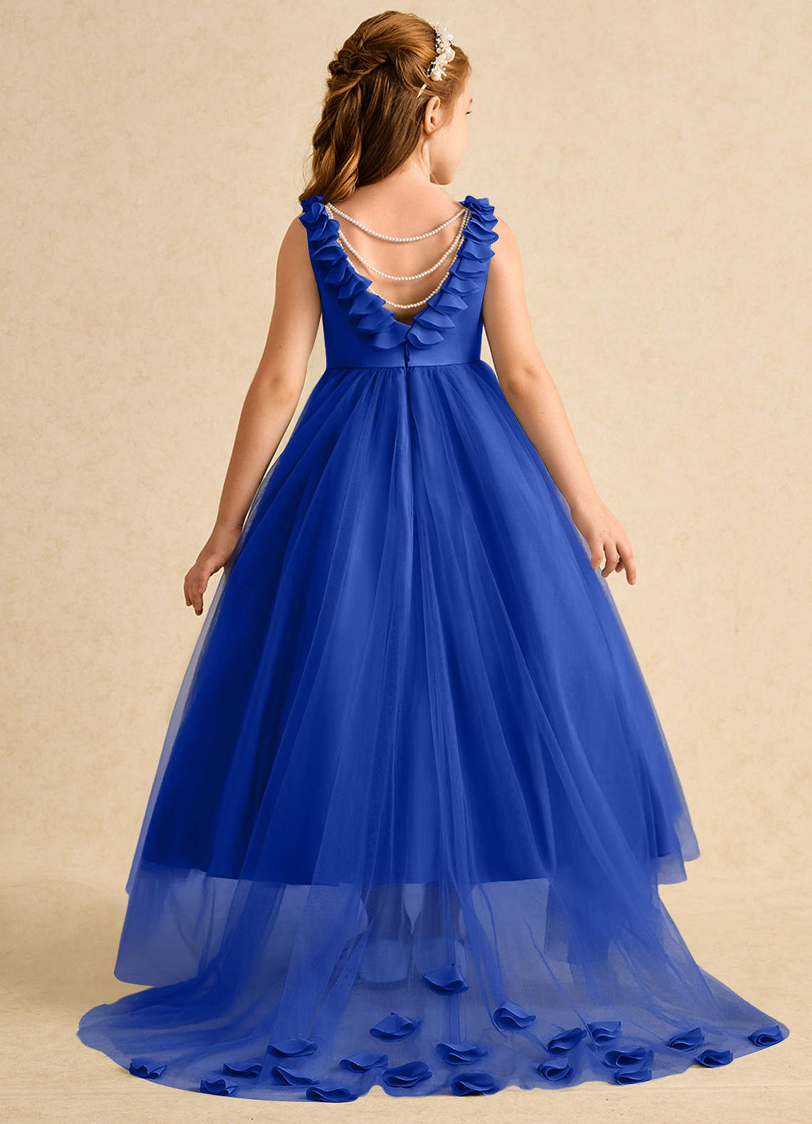Robe Trapèze en Tulle Perlé Bleu Roi