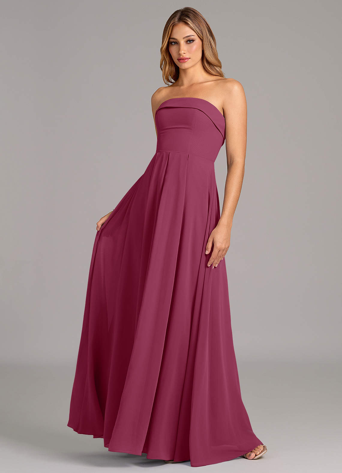 Robe Trapèze Convertible en Mousseline de soie Sans bretelles Mûre