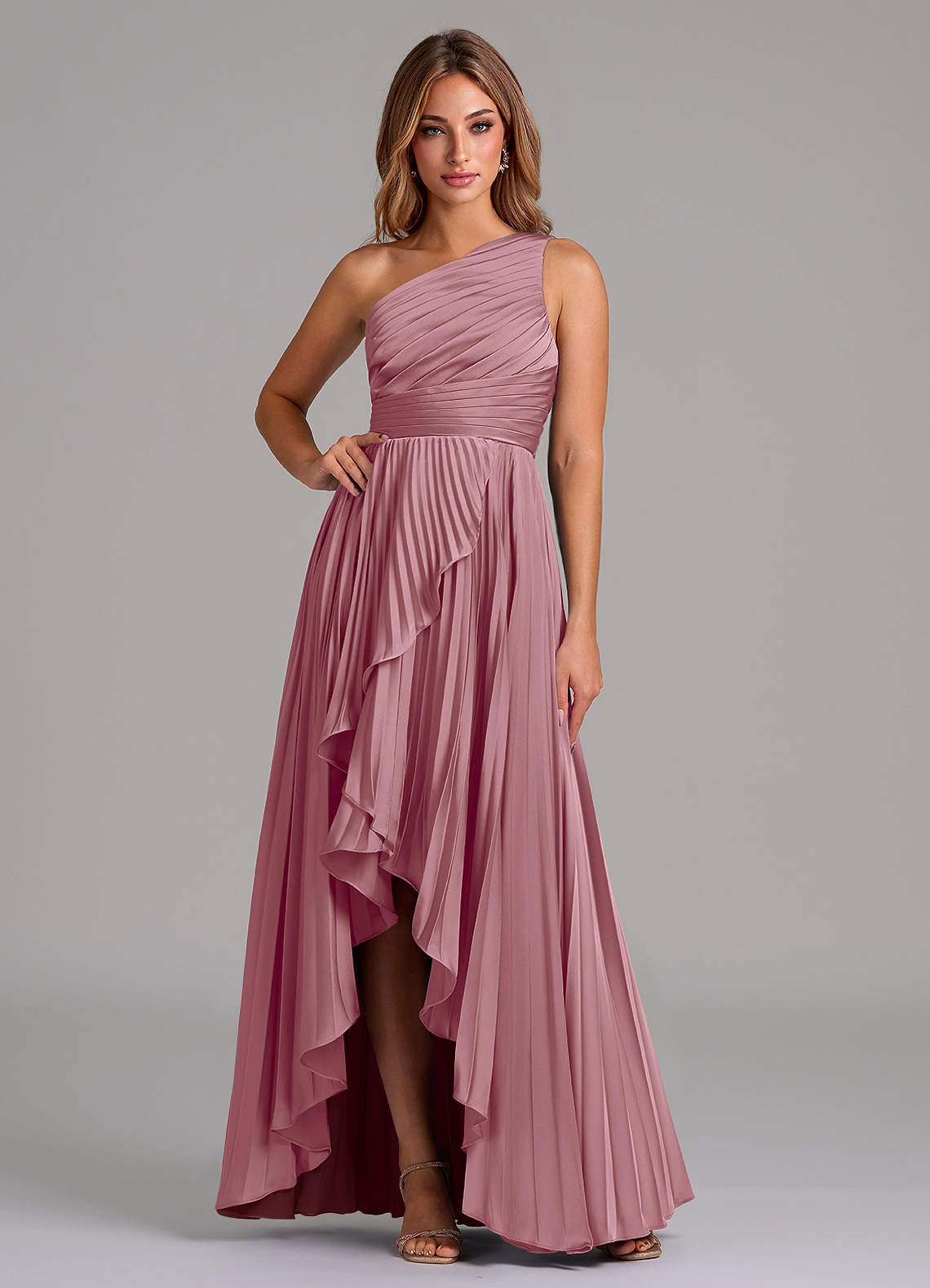 Robe Trapèze en Satin extensible Une épaule Mauve Vintage
