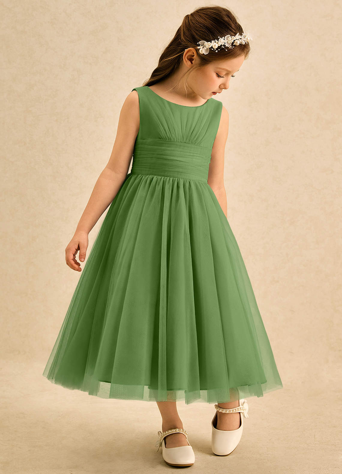 Robe Trapèze en Tulle Plissée Basilic