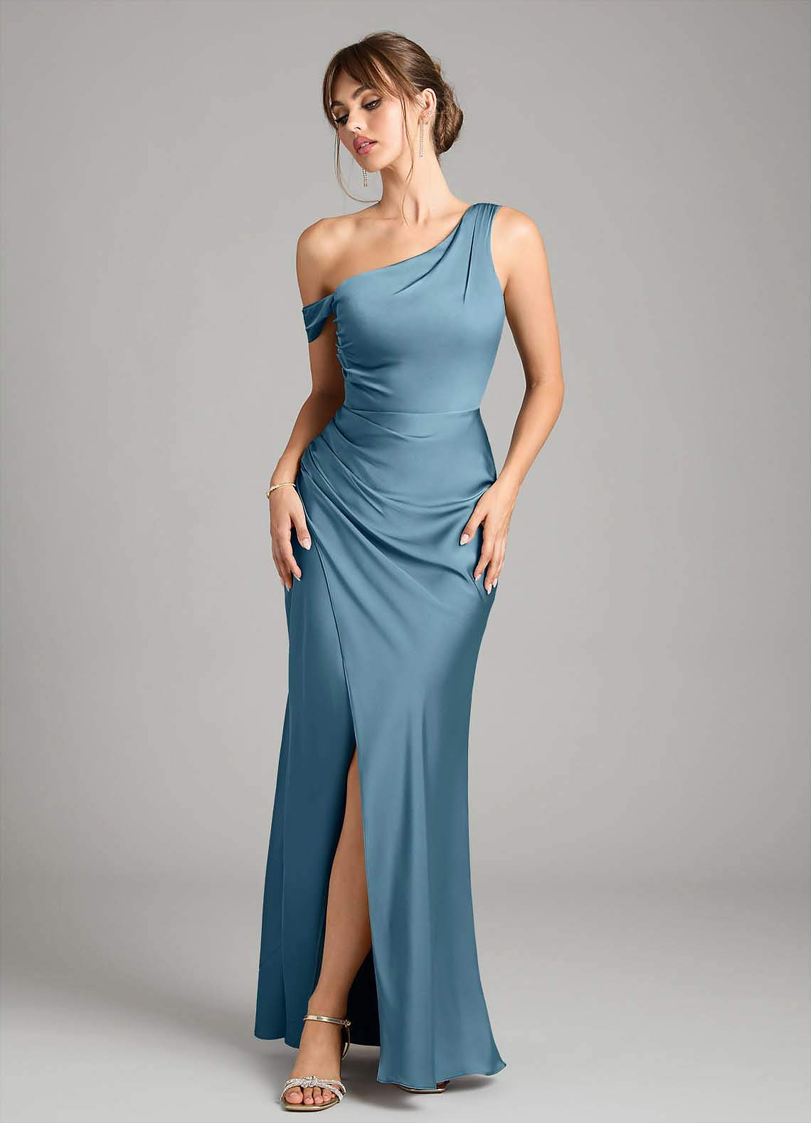 Robe Sirène Convertible en Satin extensible Une épaule Bermude