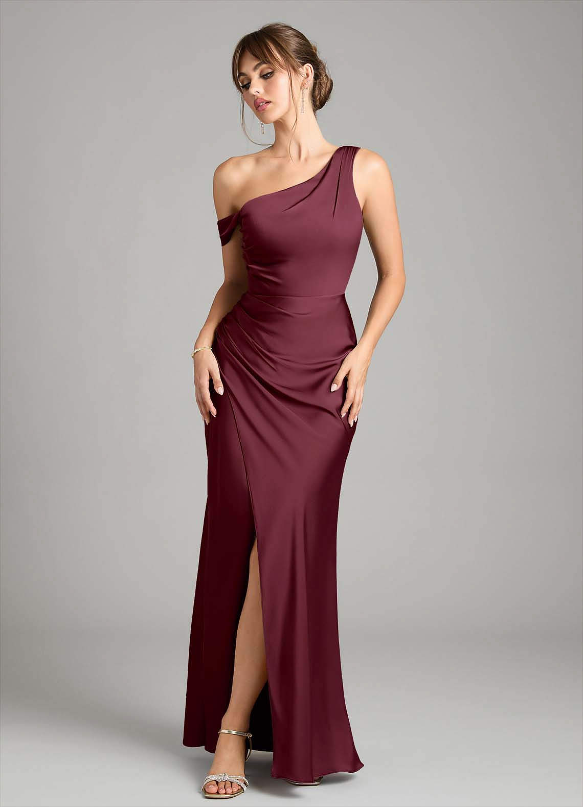 Robe Sirène Convertible en Satin extensible Une épaule Cabernet