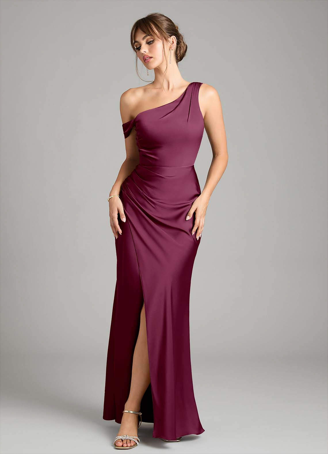 Robe Sirène Convertible en Satin extensible Une épaule Mûre