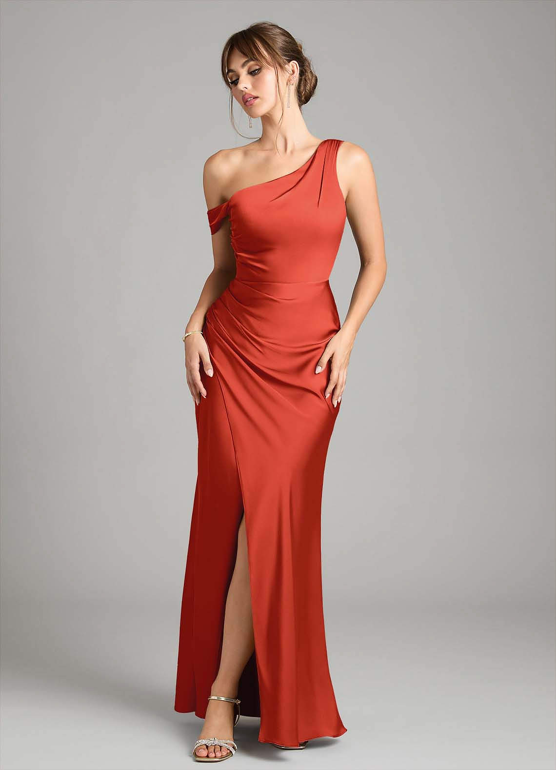 Robe Sirène Convertible en Satin extensible Une épaule Rouille
