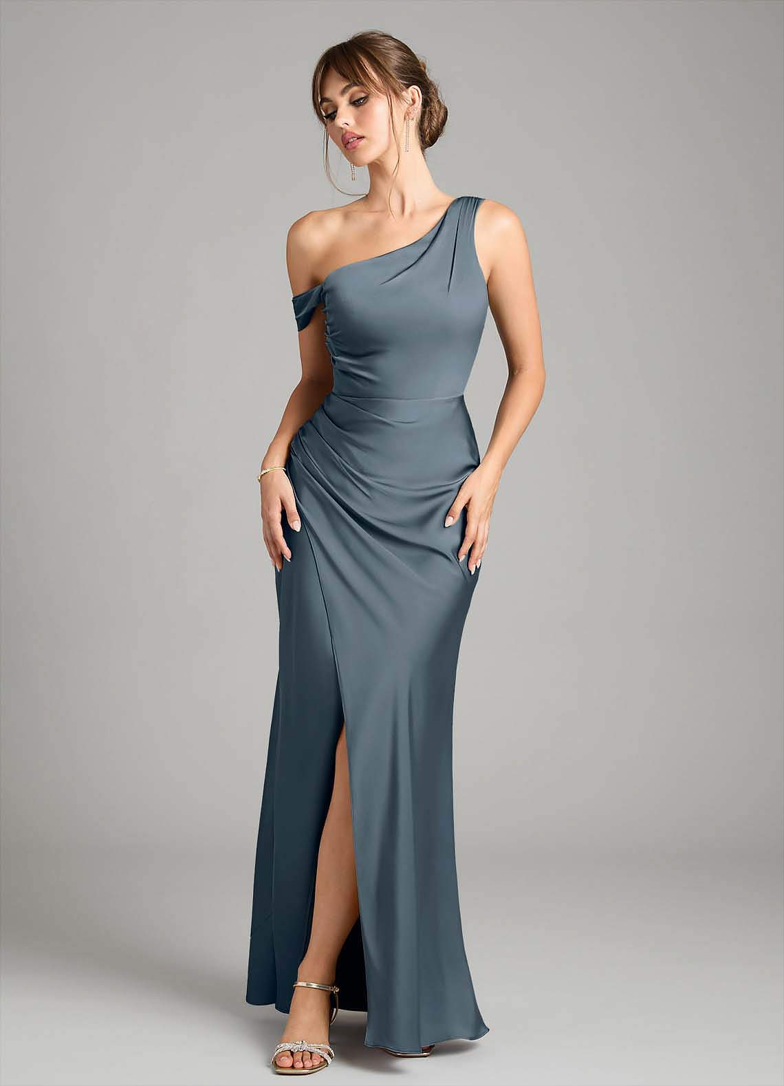 Robe Sirène Convertible en Satin extensible Une épaule Violet Crépusculaire