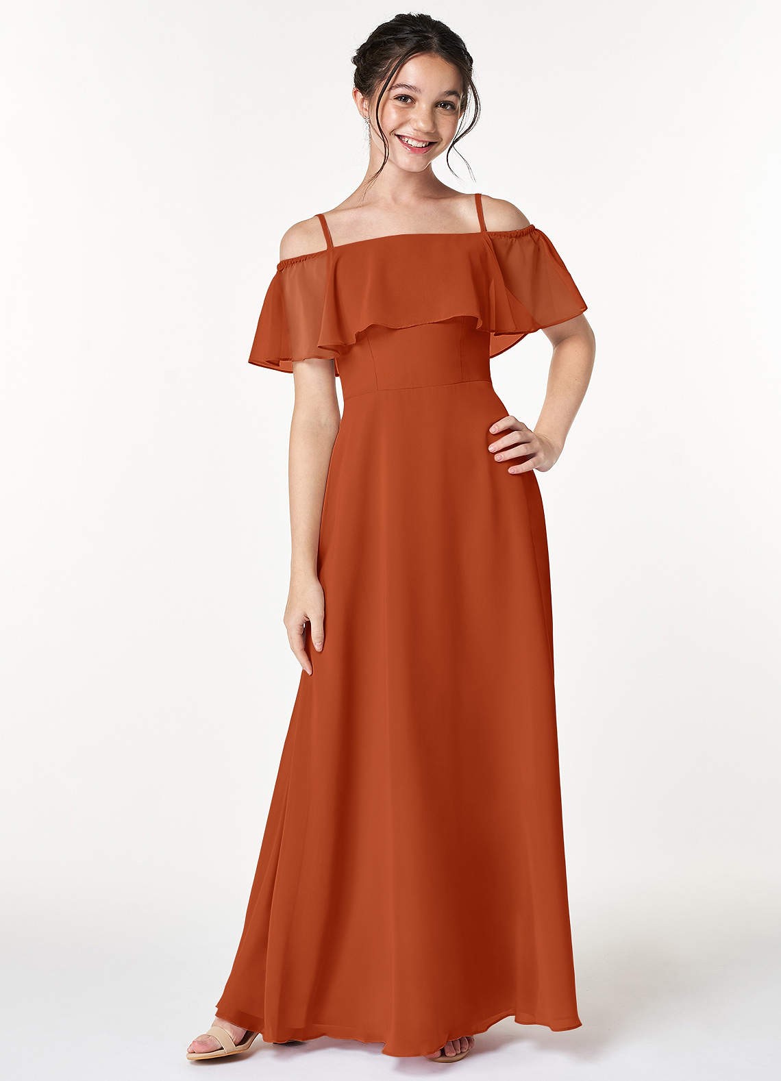 Robe Trapèze en Mousseline de soie Épaule décolletée Orange Brûlée