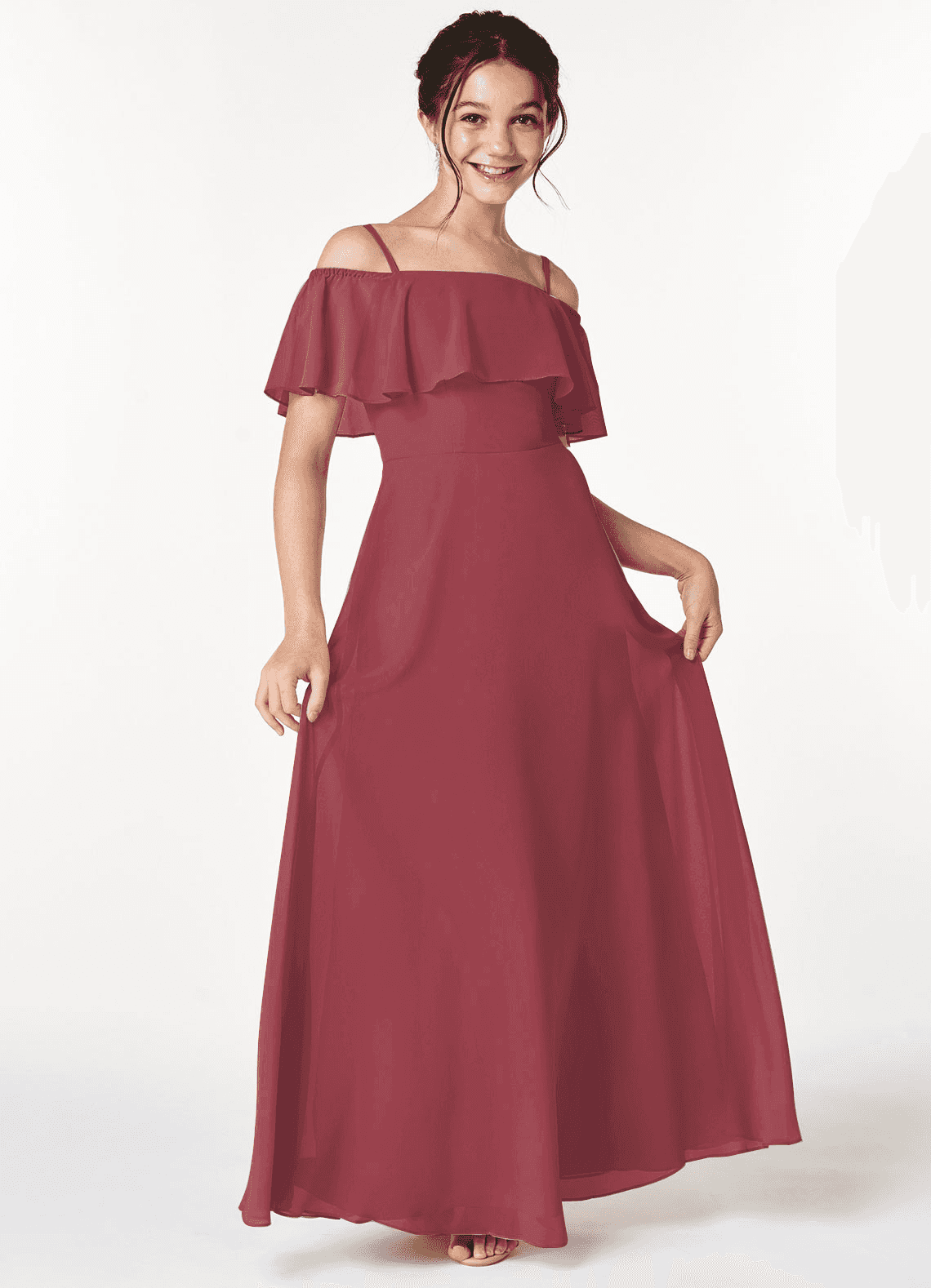Robe Trapèze en Mousseline de soie Épaule décolletée Merlot