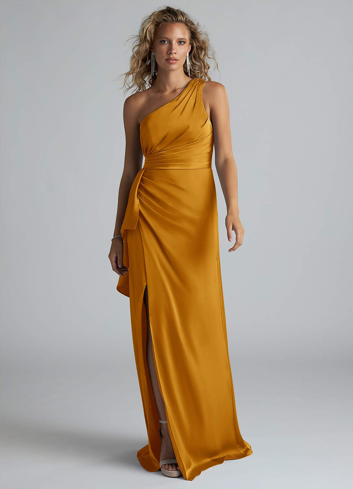 Robe Fourreau en Satin extensible Rayé Caramel écossais