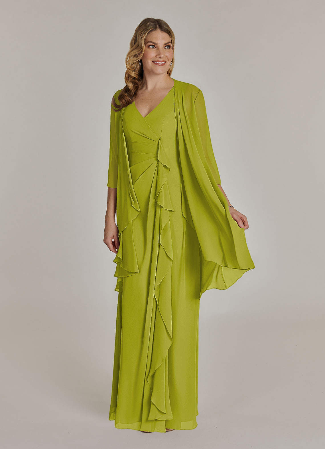 Robe Trapèze en Mousseline de soie Col V plissé Citronnelle