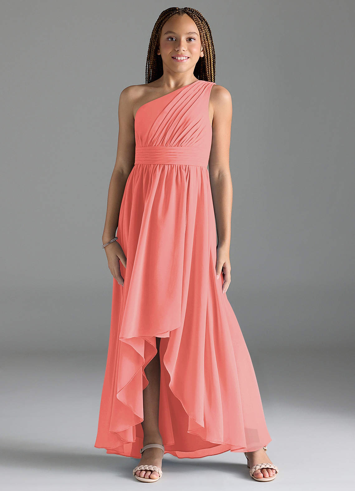 Robe Trapèze en Mousseline de soie Plissée Corail