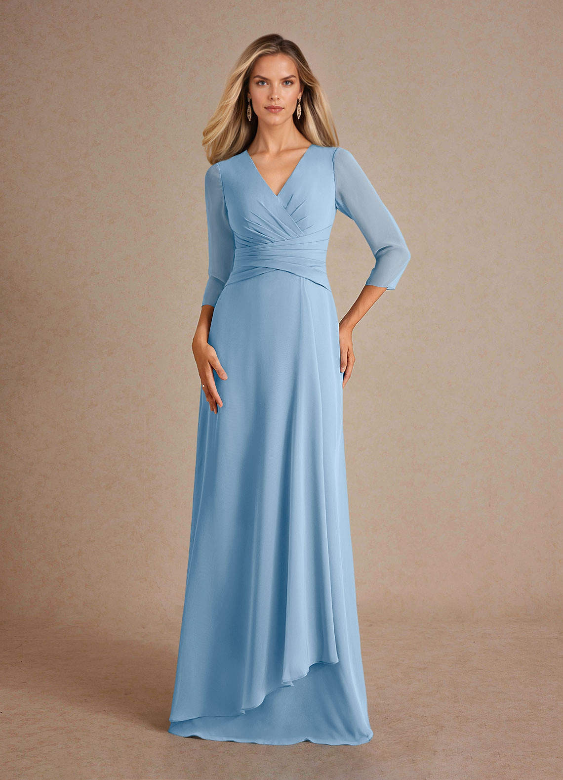 Robe Trapèze en Mousseline de soie Plissée Poudre Bleue