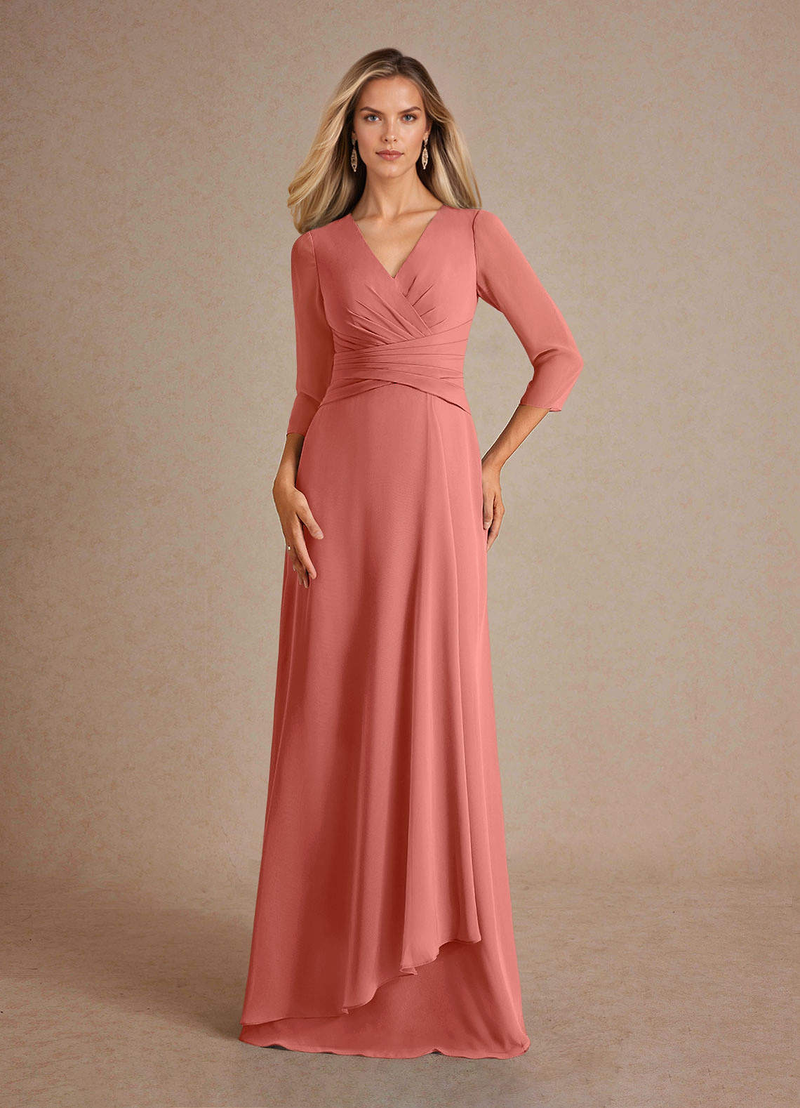 Robe Trapèze en Mousseline de soie Plissée Rose Saumon