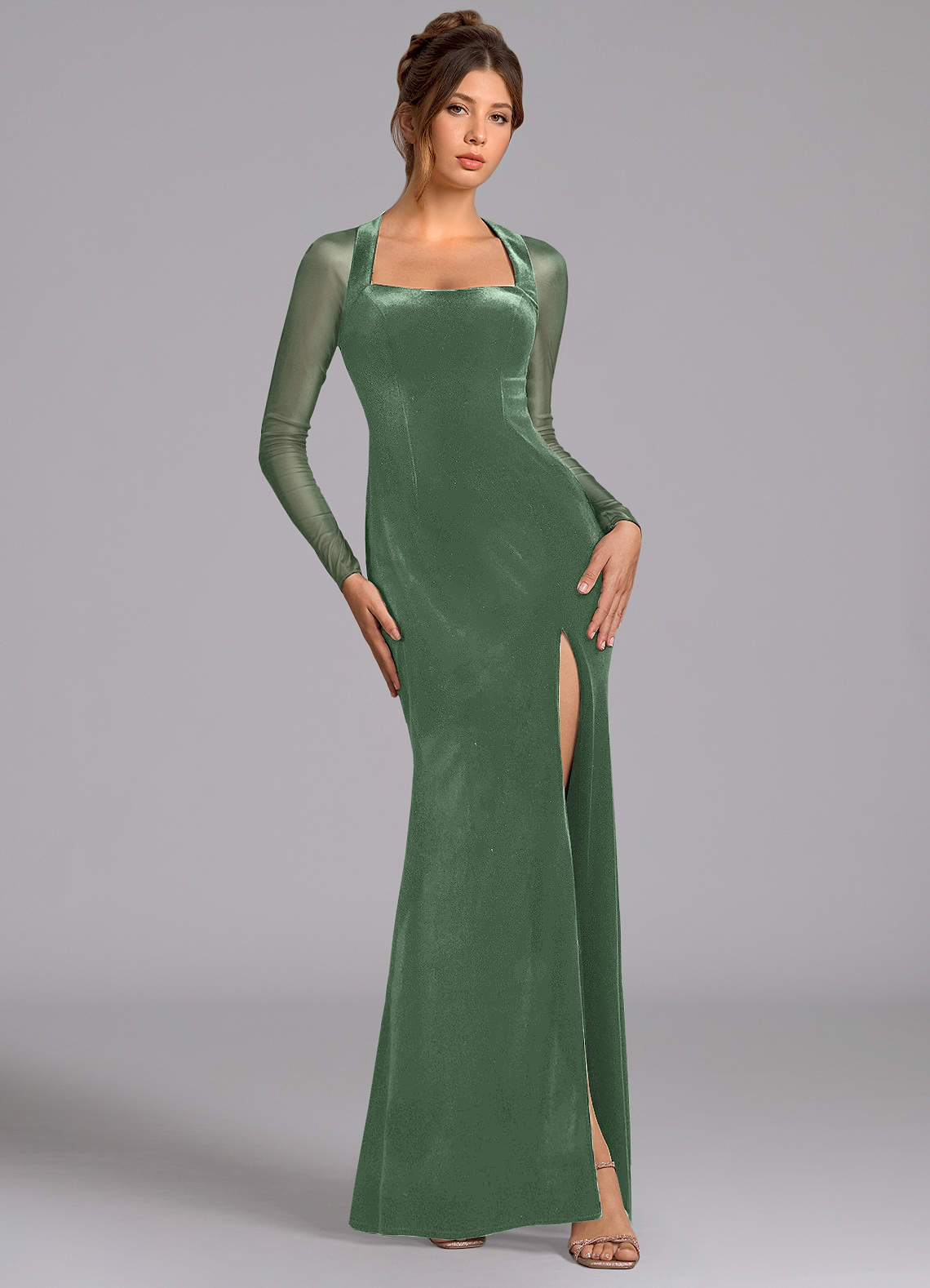 Robe Sirène en Maille Manche longue Eucalyptus