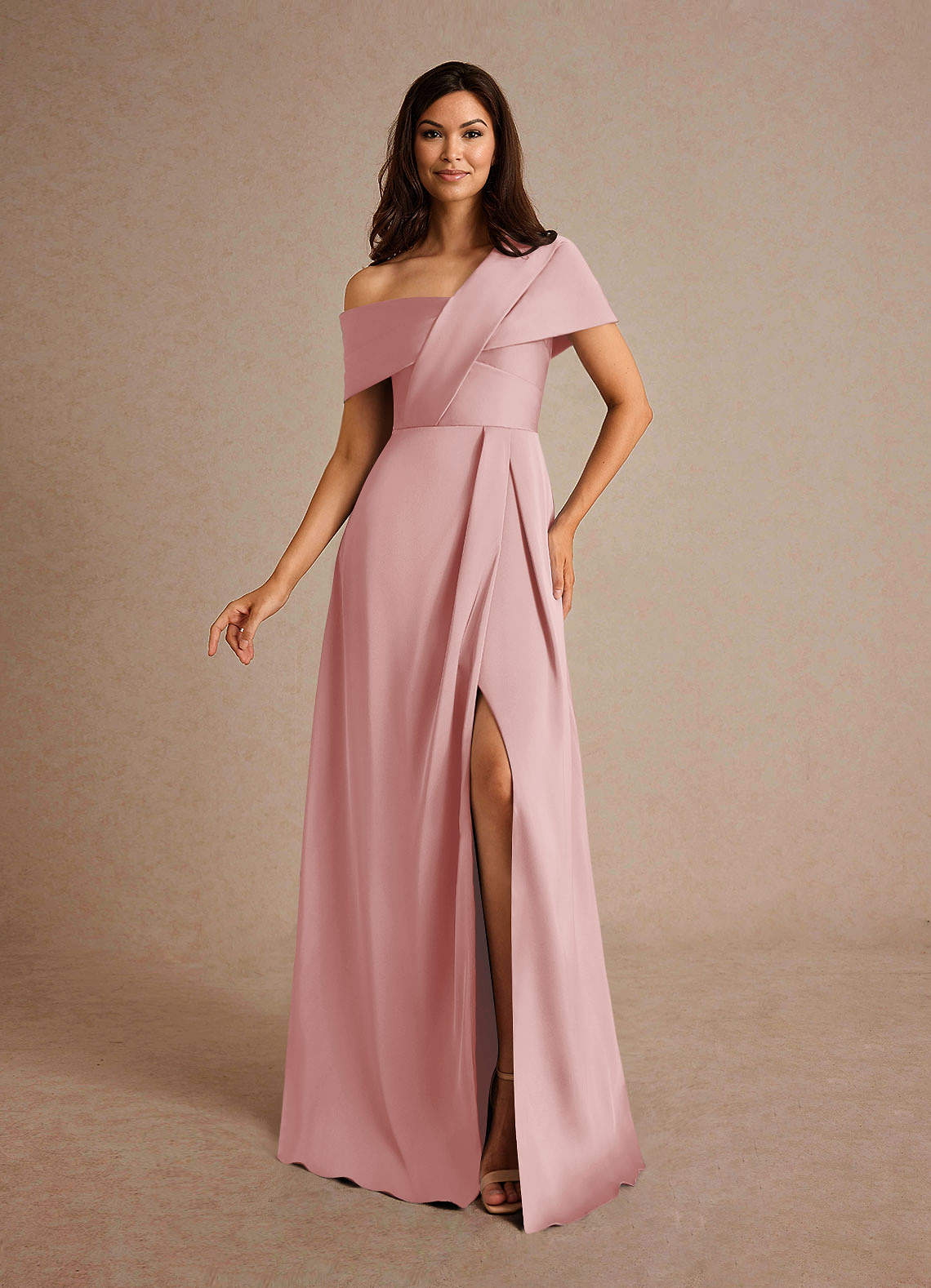Robe Trapèze en Satin extensible Plissée Rose Poudré