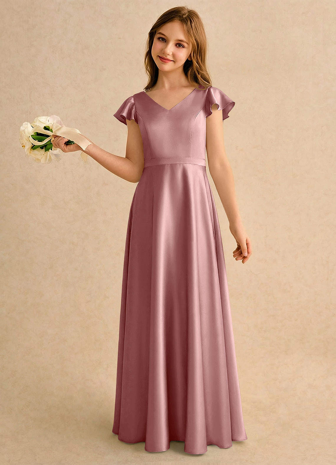 Robe Trapèze en Satin extensible avec manches Rose Poussiéreuse