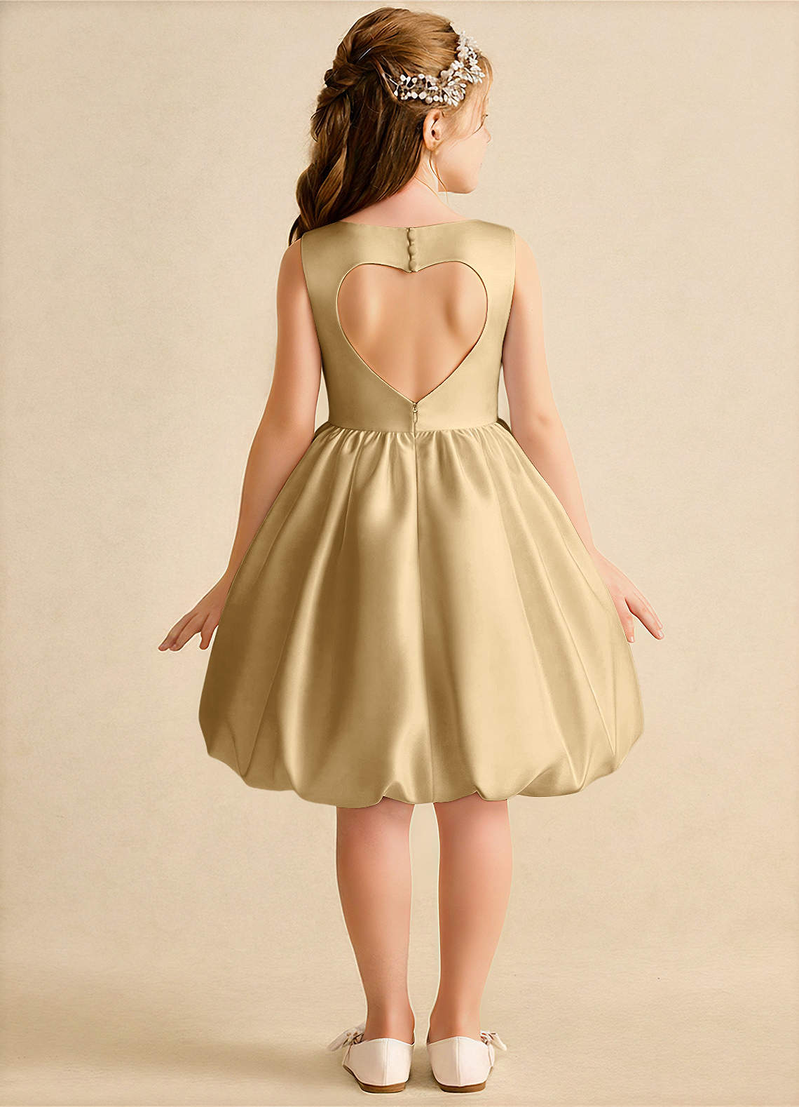 Robe Princesse en Mat Satiné Rayé Or