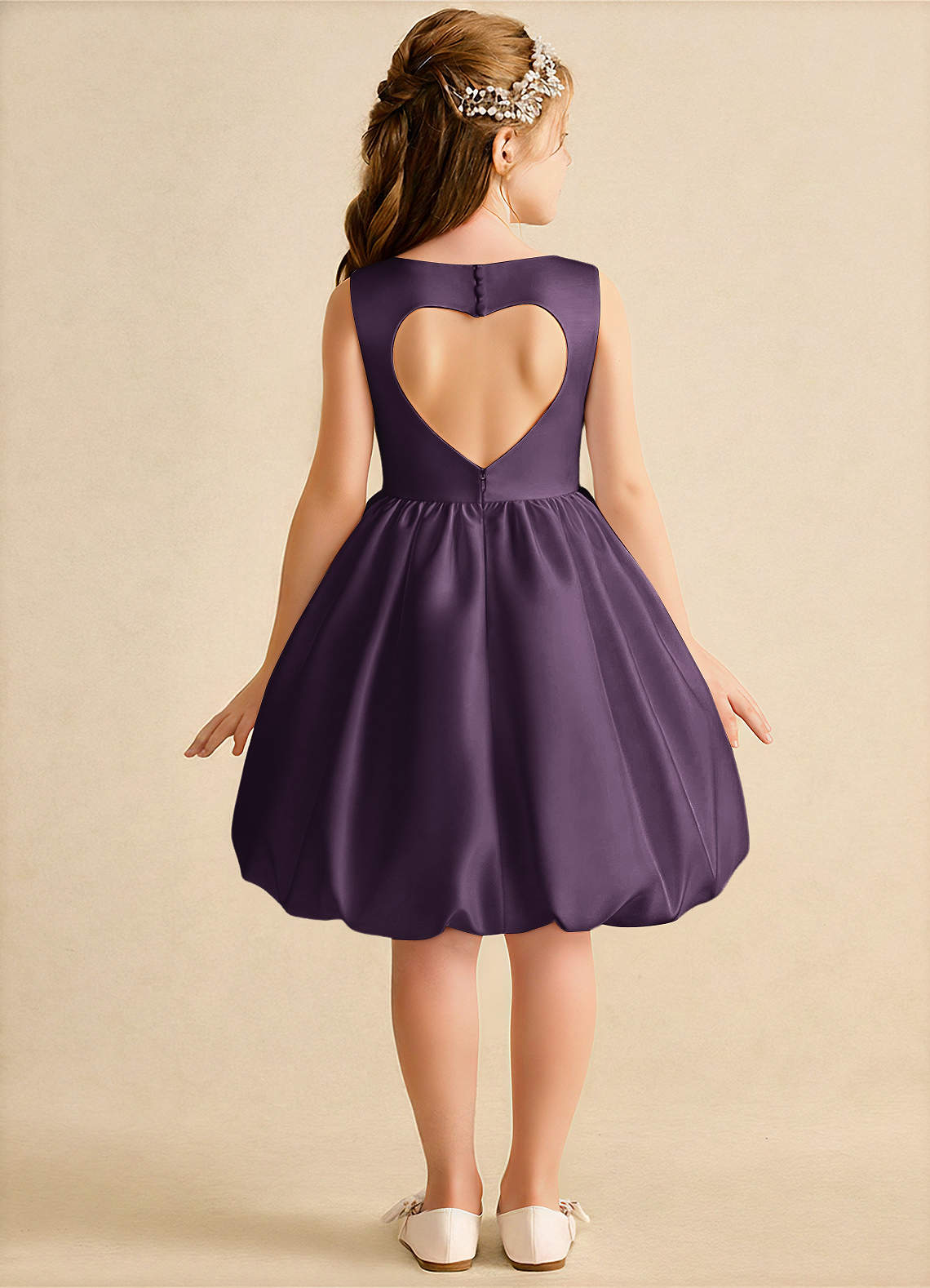 Robe Princesse en Mat Satiné Rayé Prune