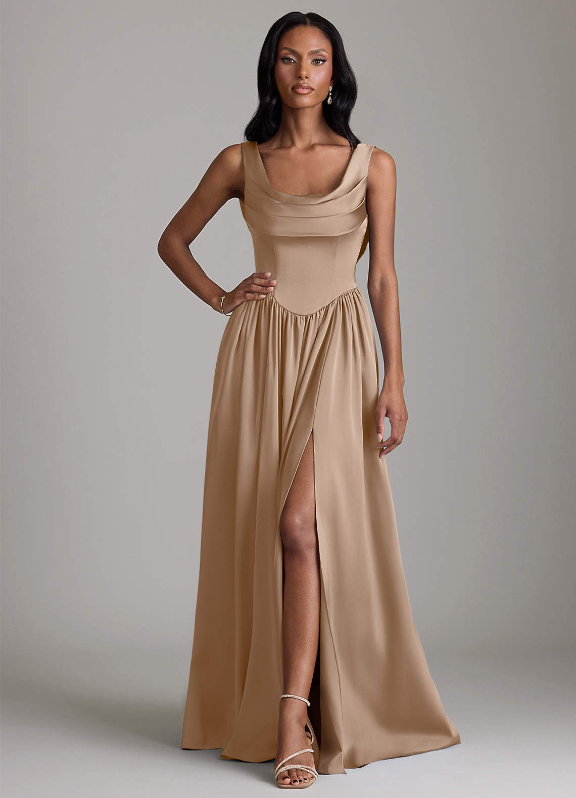 Robe Trapèze en Satin extensible avec poches Taupe