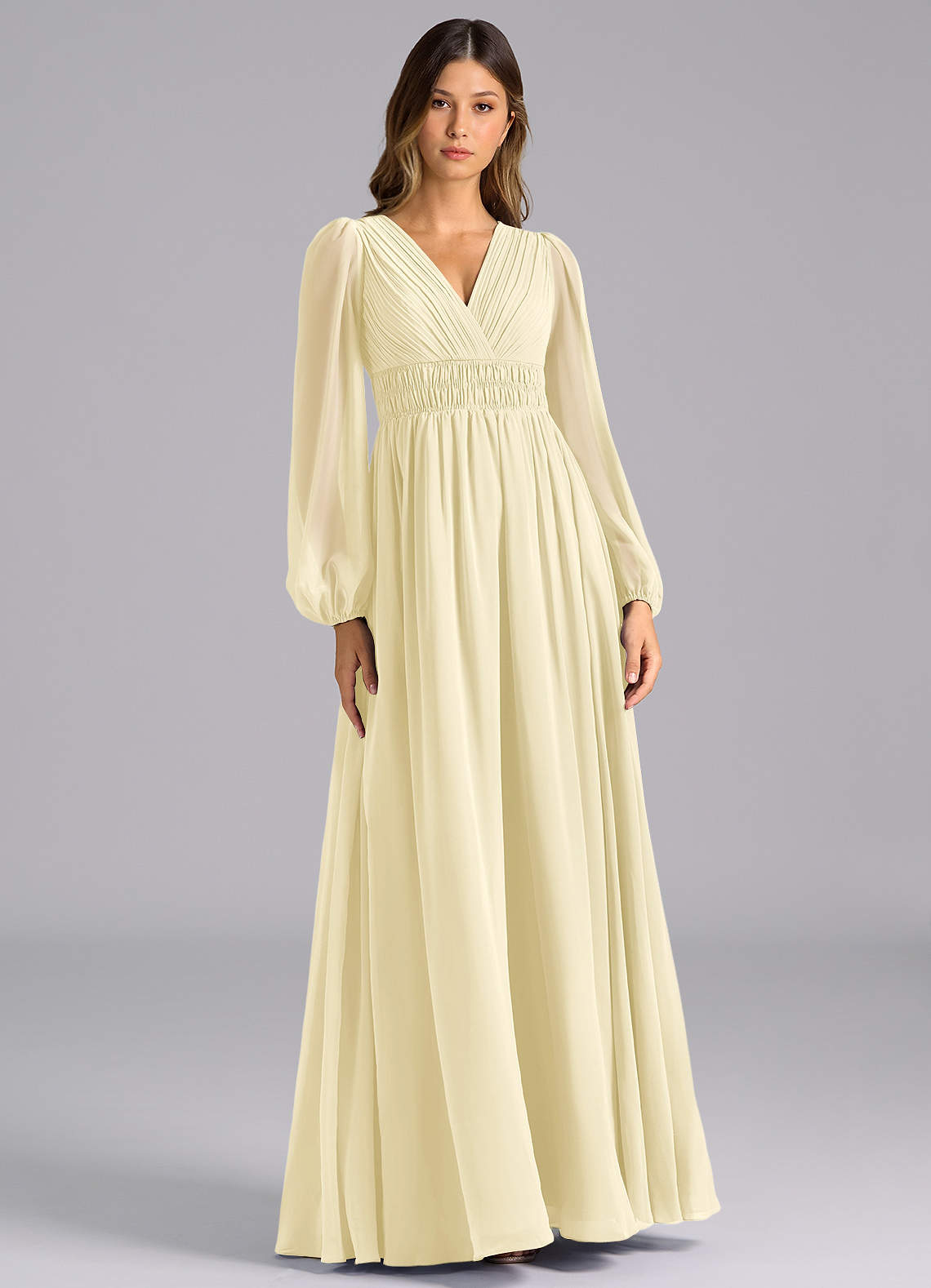 Robe Trapèze en Mousseline de soie Manche longue Sorbet Citron