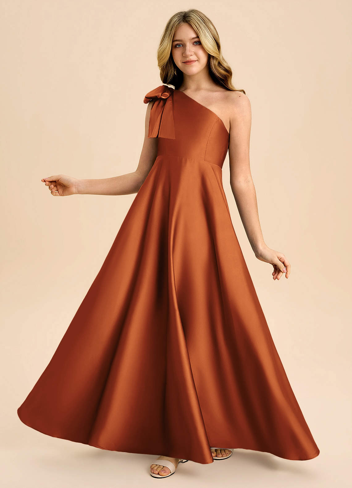 Robe Trapèze en Satin extensible Arc Cannelle