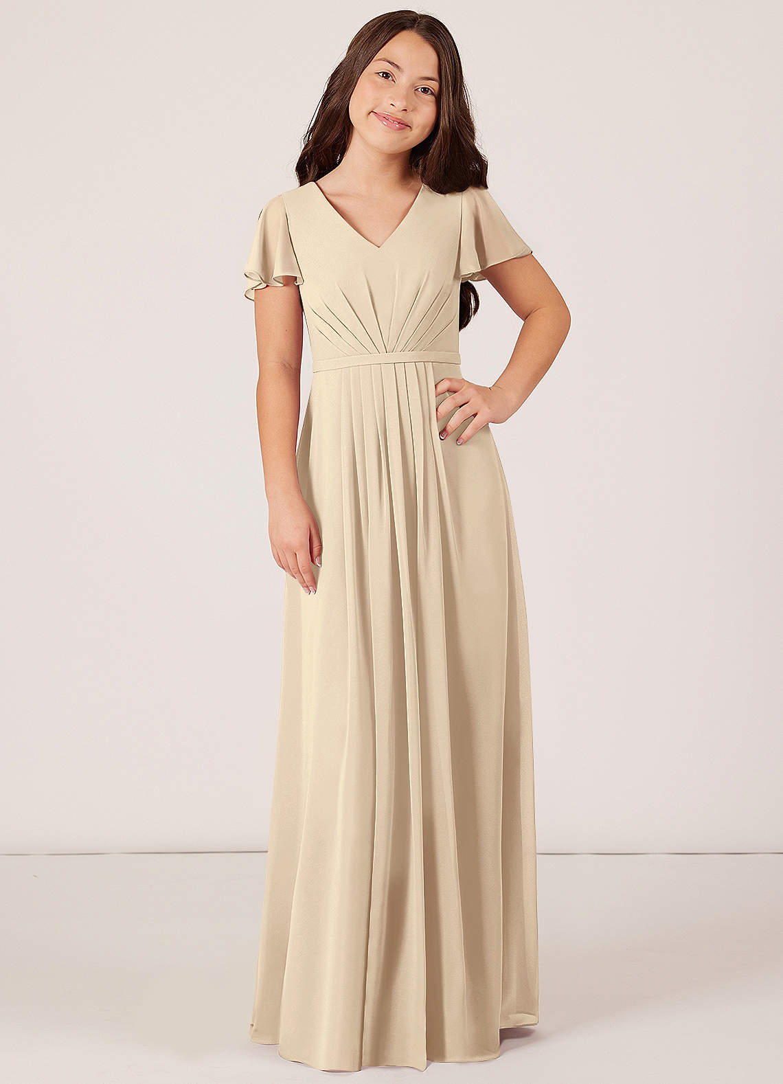 Robe Trapèze en Mousseline de soie Plissée Champagne
