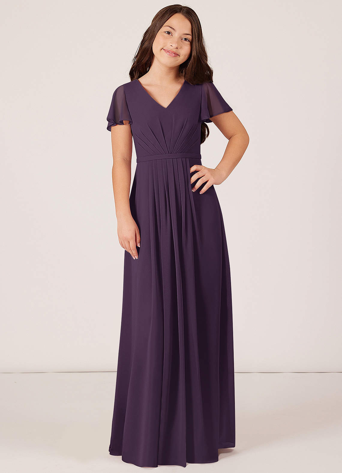 Robe Trapèze en Mousseline de soie Plissée Prune
