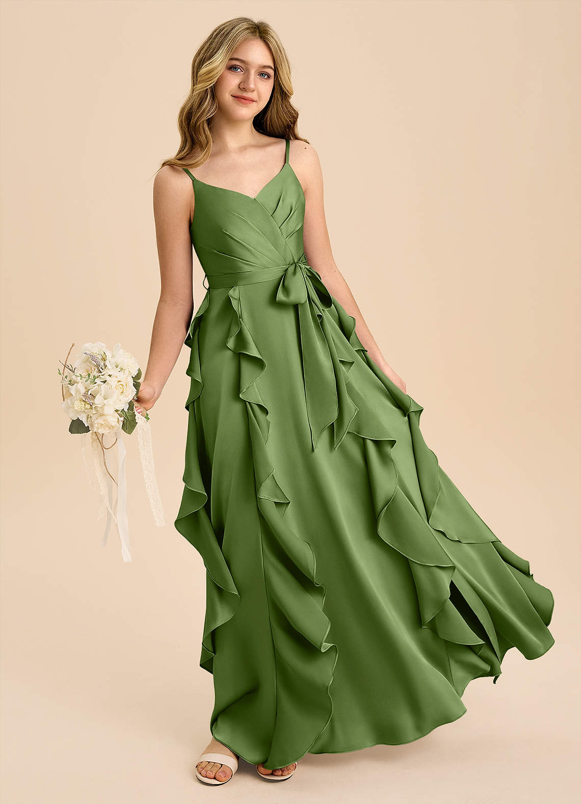 Robe Trapèze en Satin extensible Plissée Genévrier