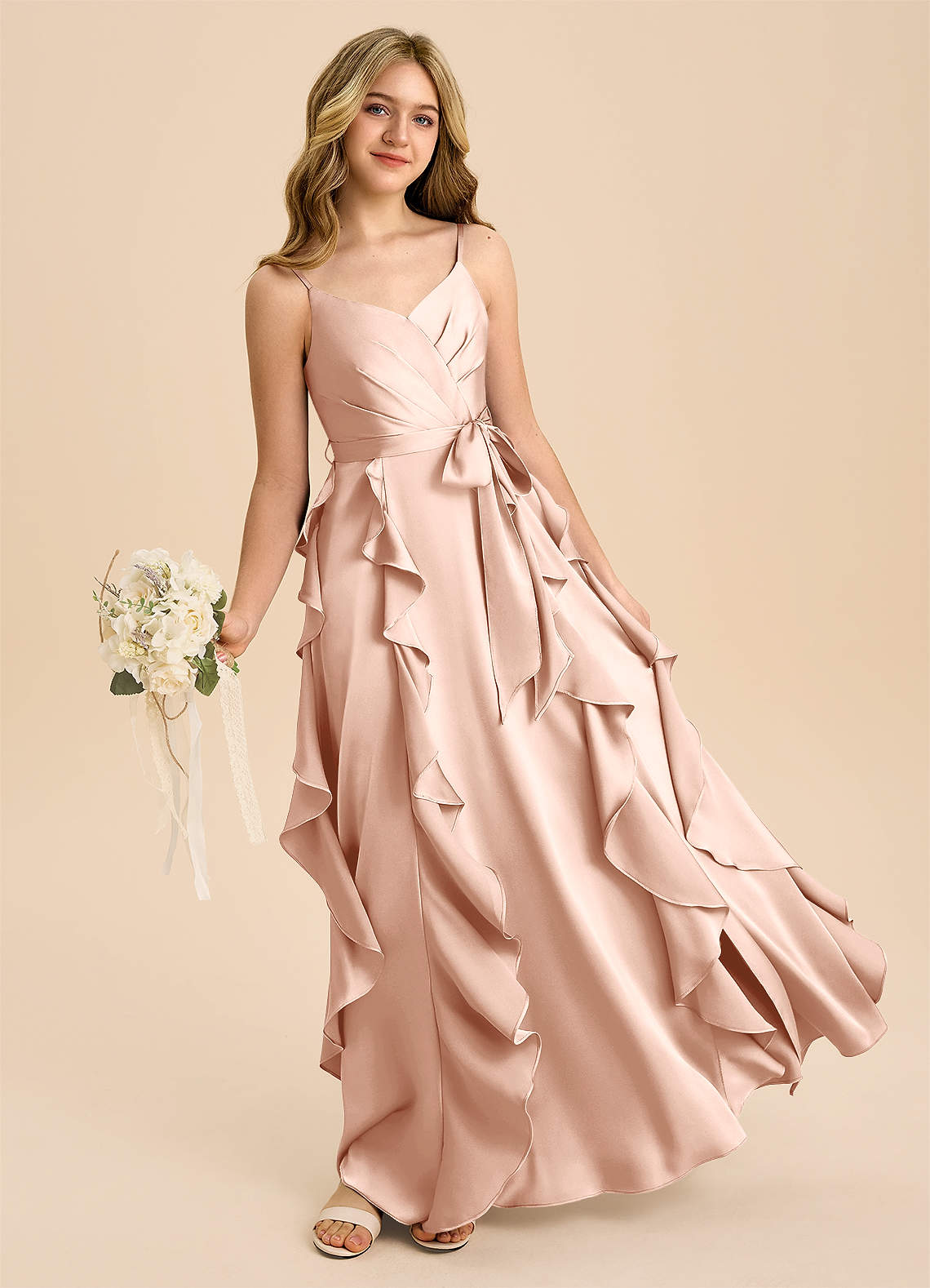 Robe Trapèze en Satin extensible Plissée Or Rose