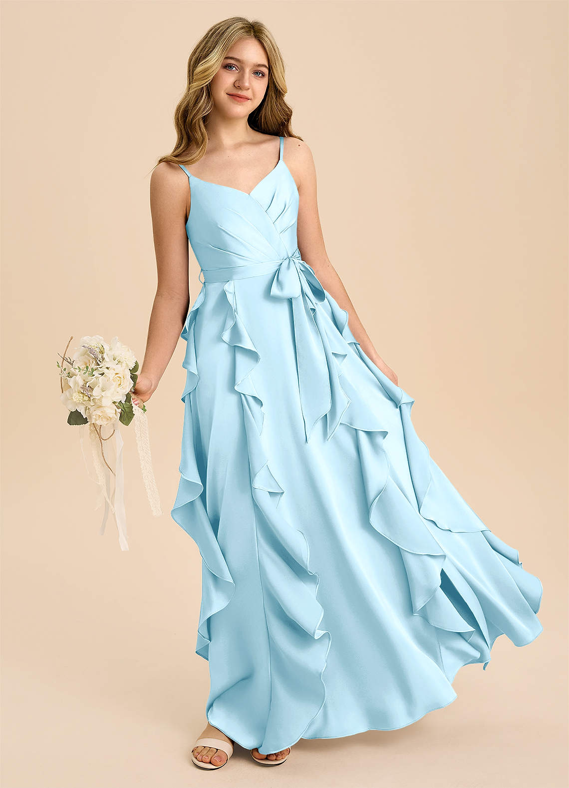 Robe Trapèze en Satin extensible Plissée Bleu Ciel