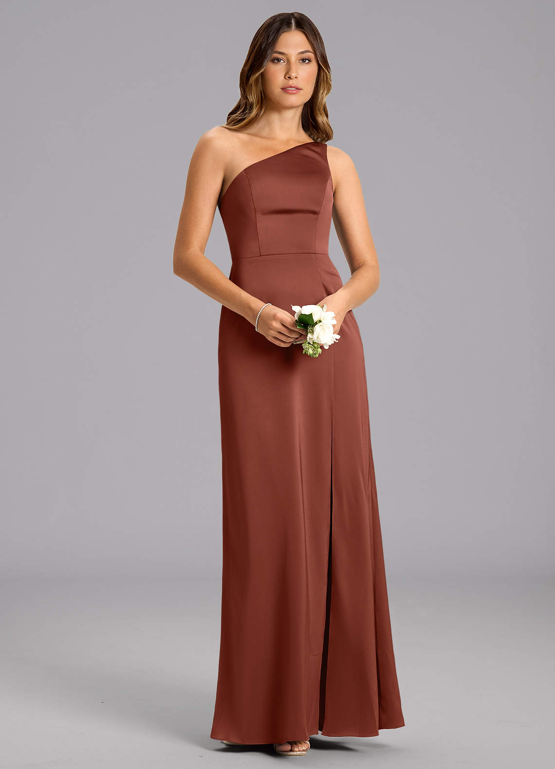 Robe Trapèze en Satin extensible Une épaule Auburn