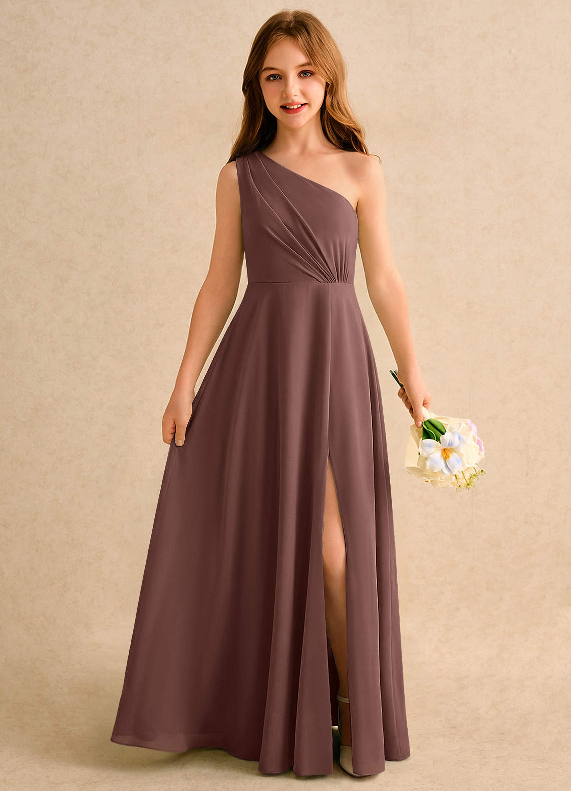 Robe Trapèze en Mousseline de soie Une épaule Expresso