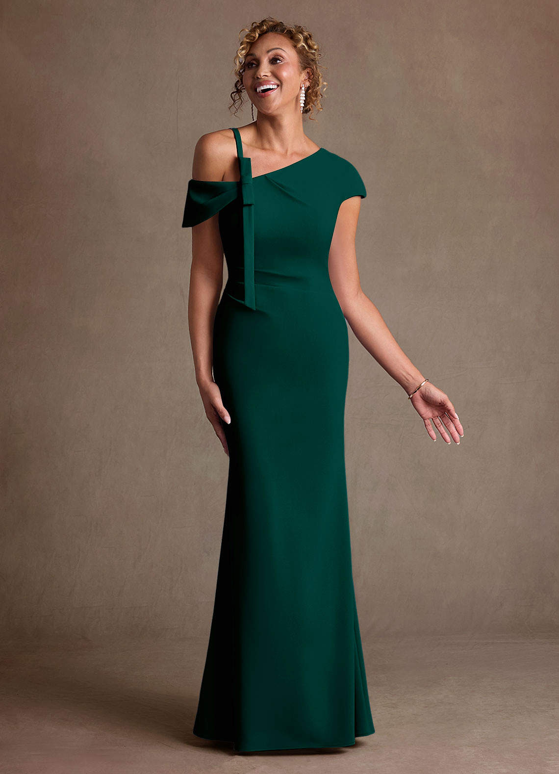 Robe Fourreau en Crêpe Élastique Épaule décolletée Vert Pin
