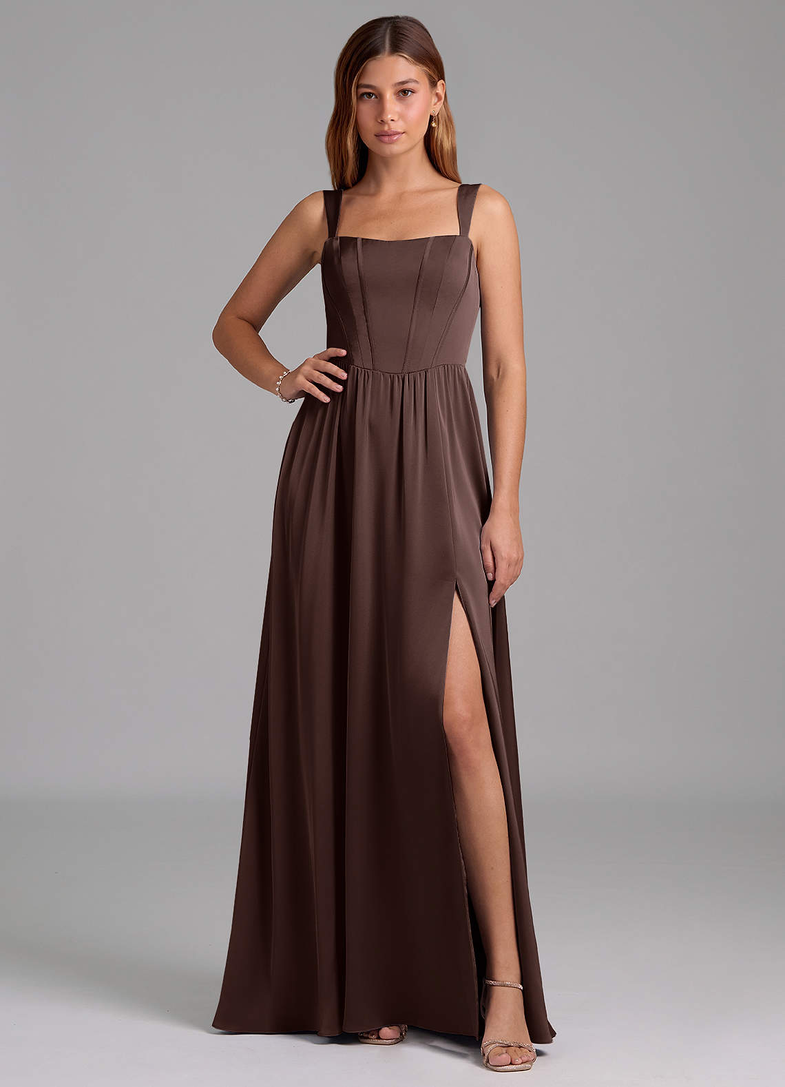 Robe Trapèze en Satin extensible Fente Latérale Ganache