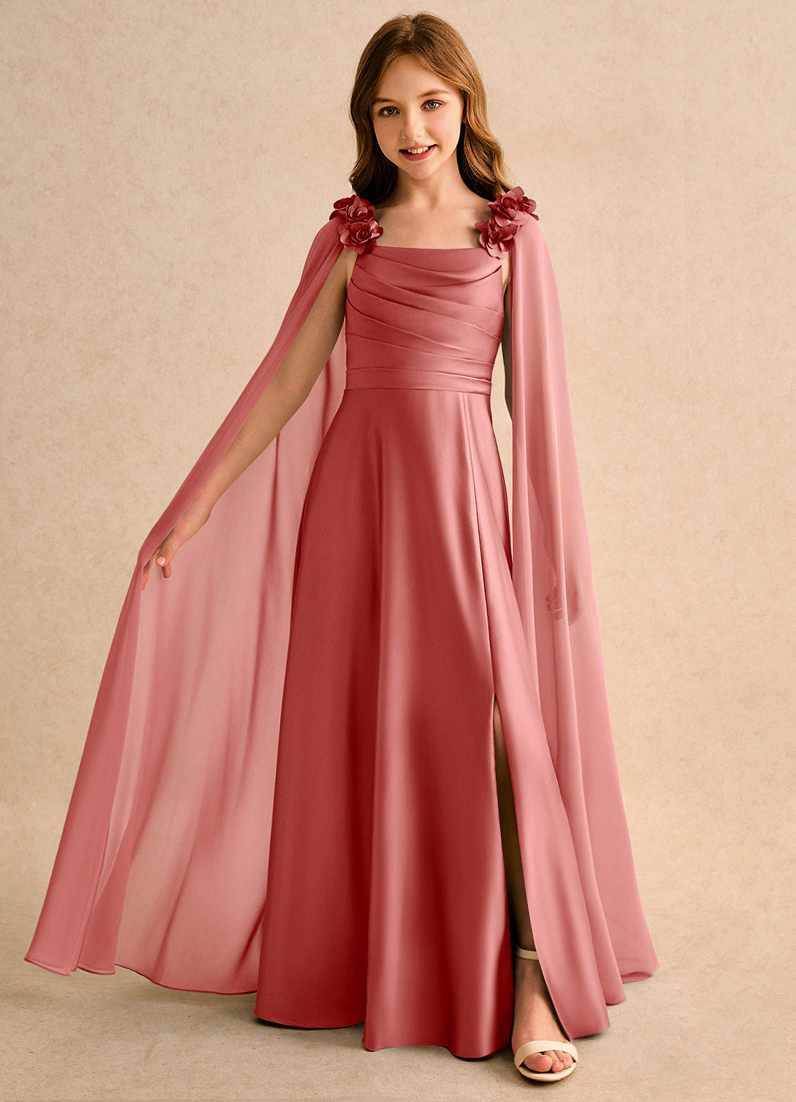 Robe Trapèze en Mat Satiné Plissée Antique Rose