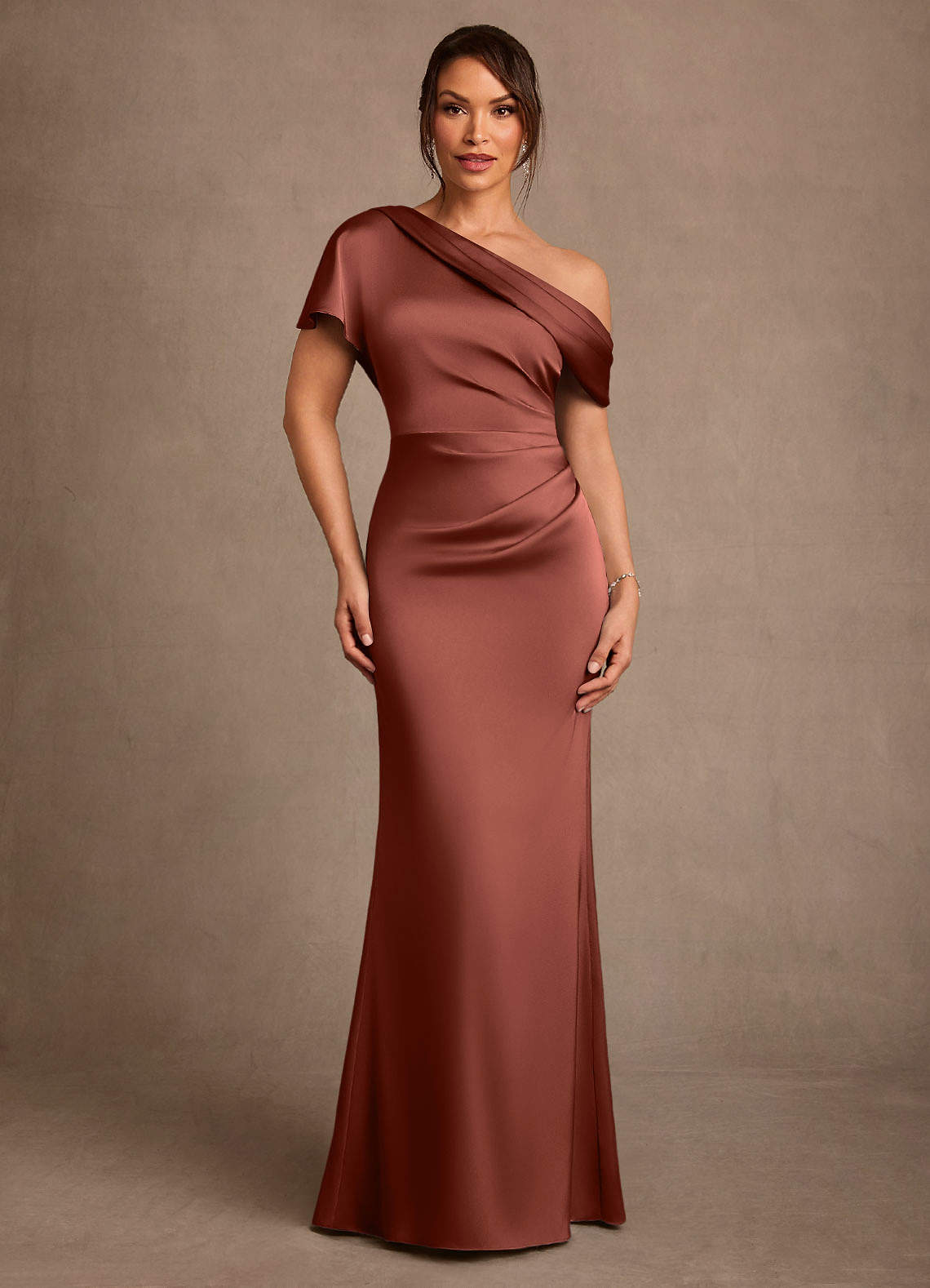 Robe Fourreau en Satin extensible Une épaule Auburn