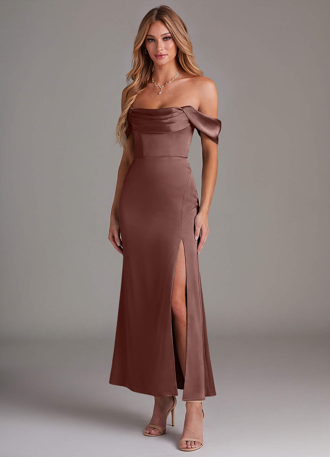 Robe Sirène en Satin extensible Épaule décolletée Expresso