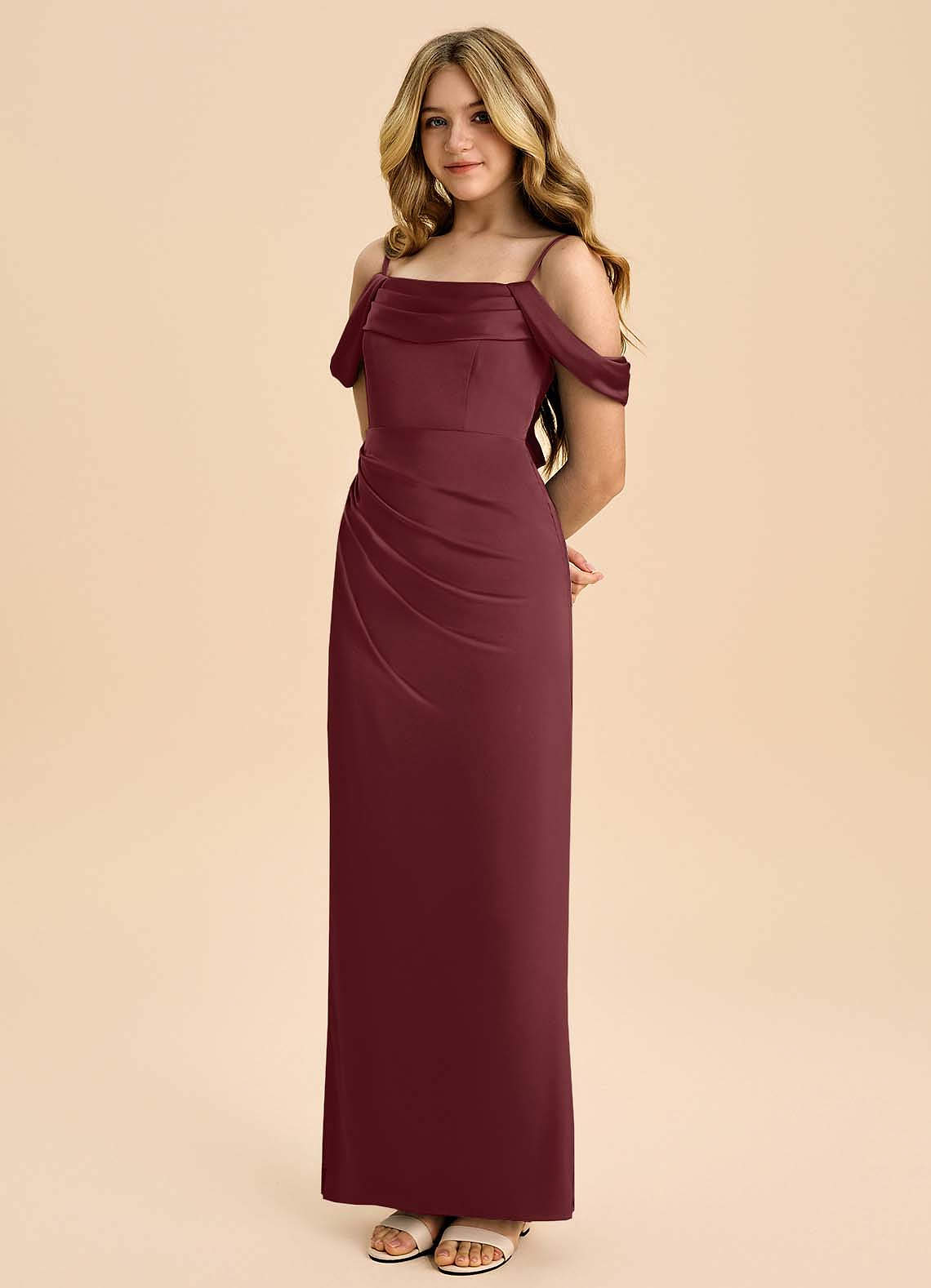 Robe Fourreau en Satin extensible Épaule décolletée Cabernet