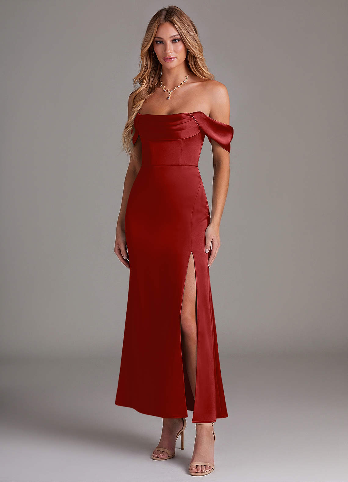 Robe Sirène en Satin extensible Épaule décolletée Grenade