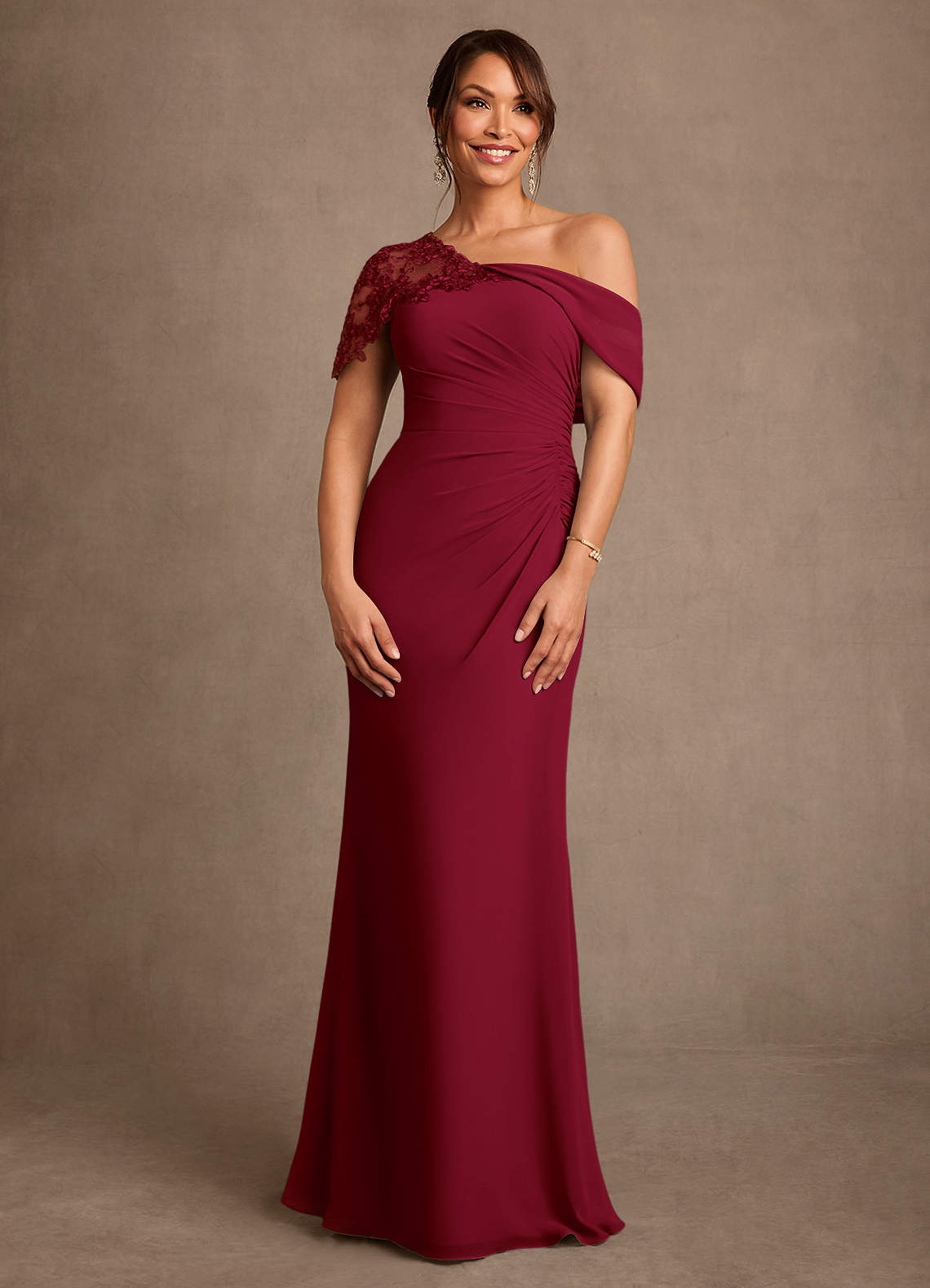 Robe Fourreau en Mousseline de soie Dentelle Bourgogne