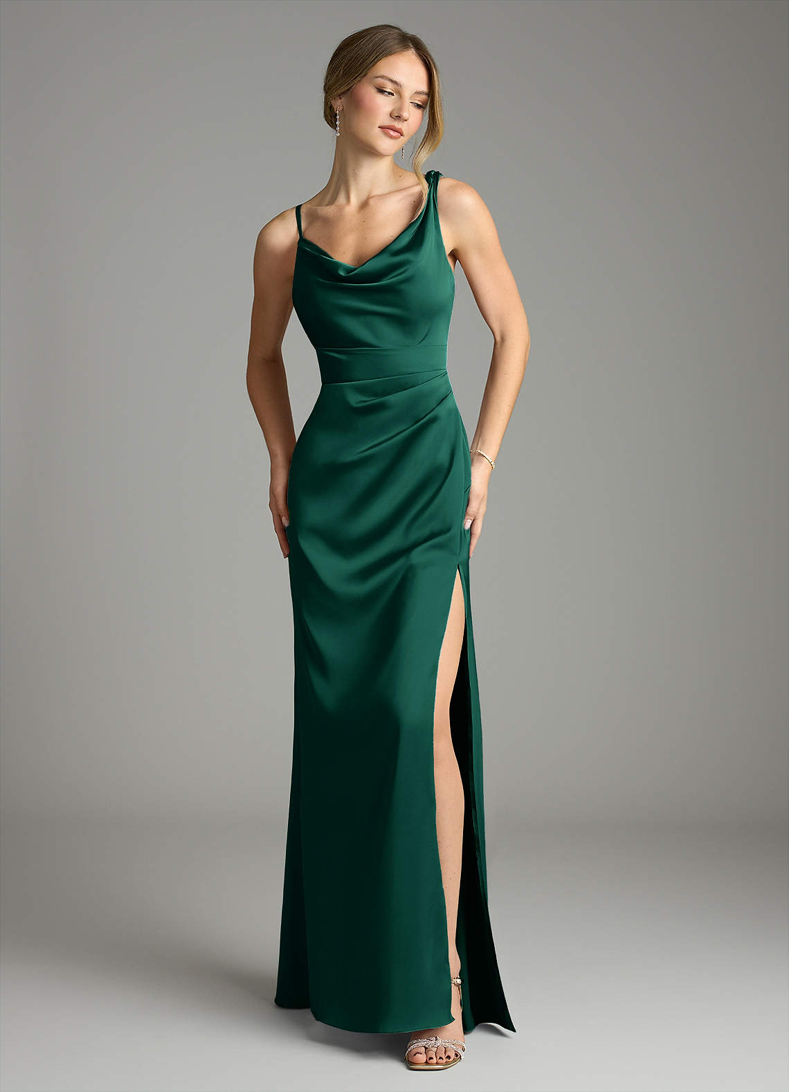 Robe Sirène en Satin extensible Plissée émeraude