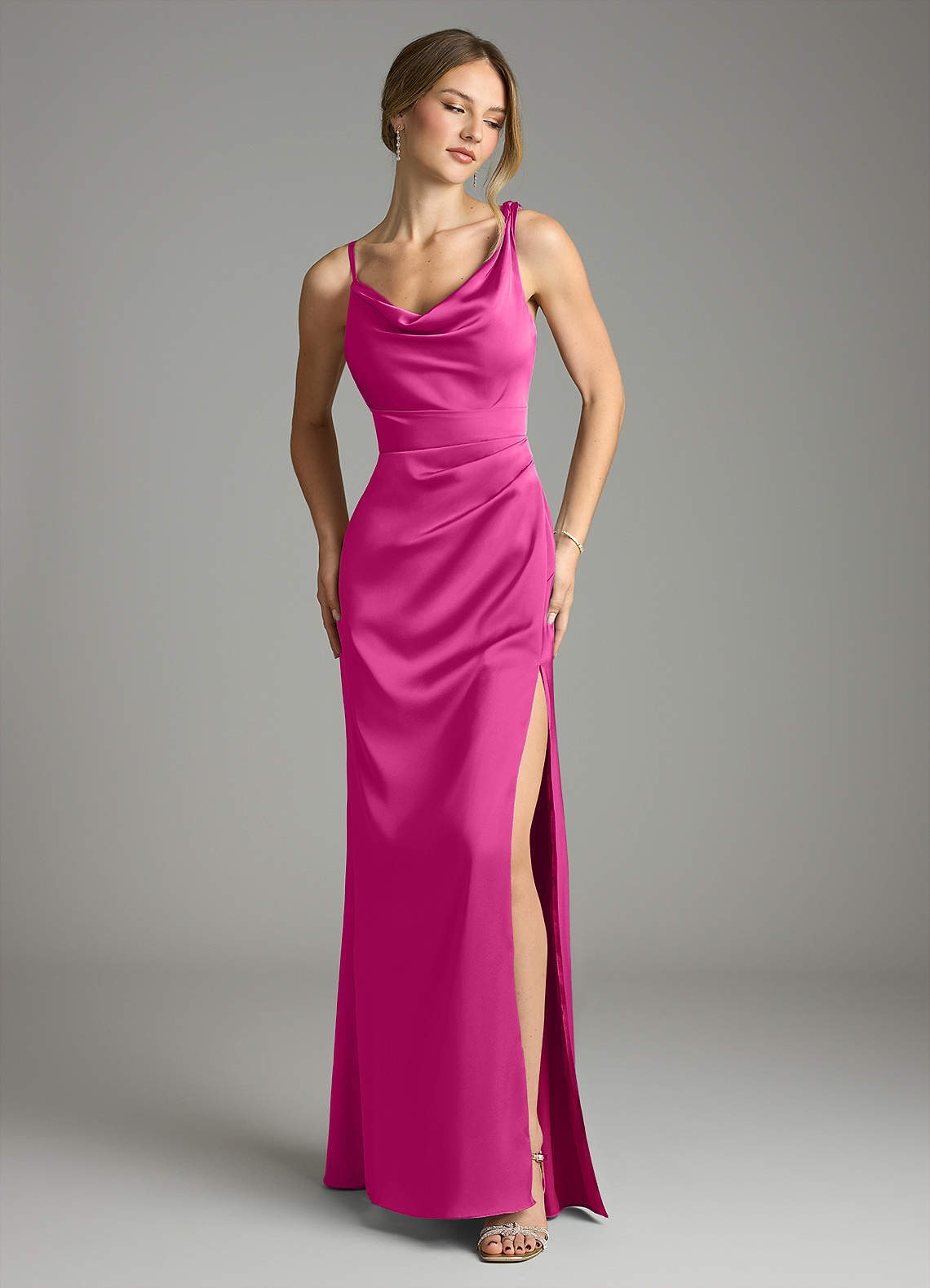 Robe Sirène en Satin extensible Plissée Fuchsia