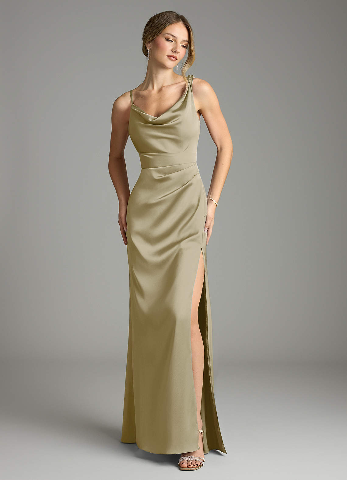 Robe Sirène en Satin extensible Plissée Vert Mousse