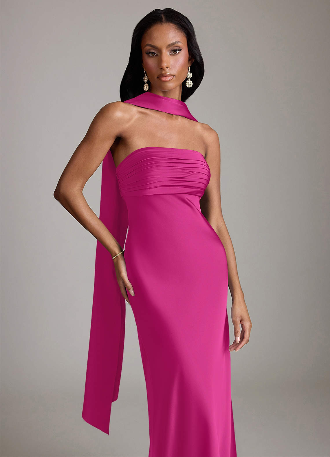 Robe Sirène en Satin extensible Sans bretelles Fuchsia