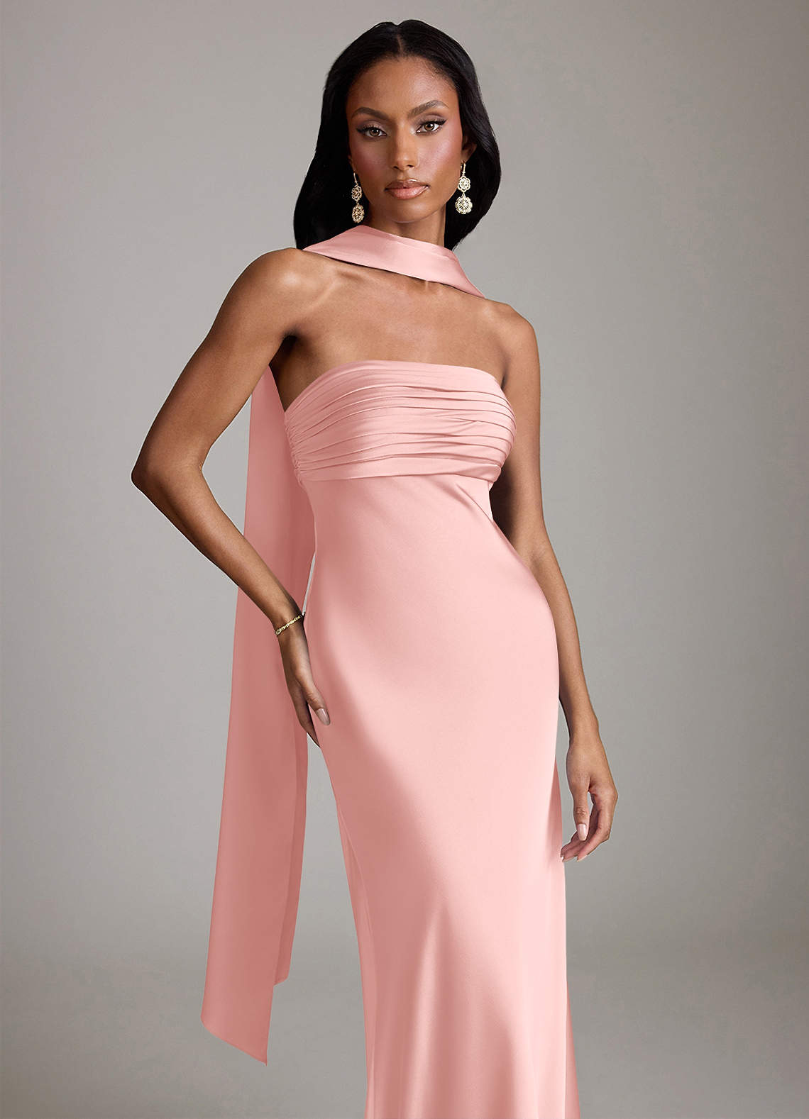 Robe Sirène en Satin extensible Sans bretelles Rose Poudré