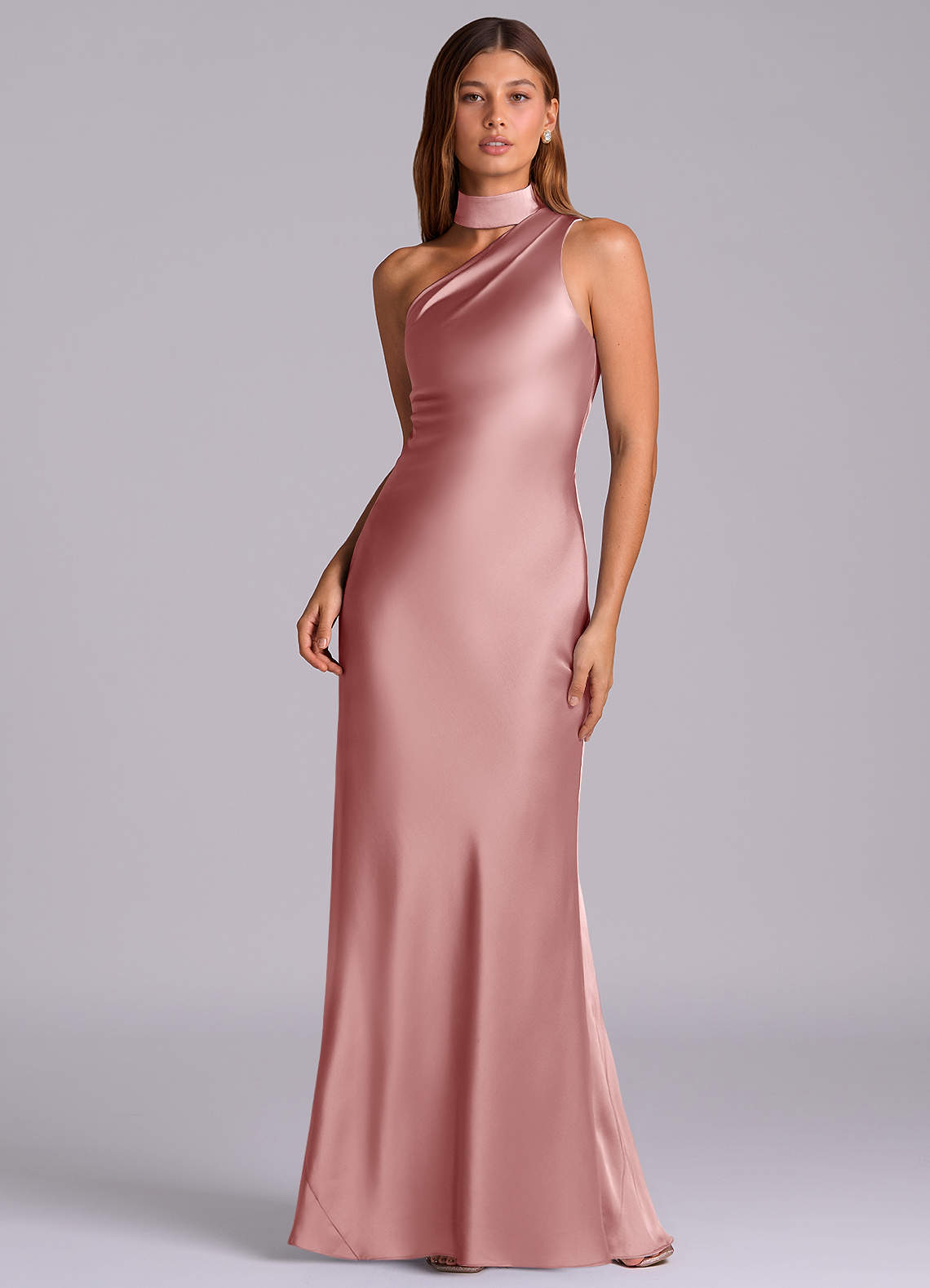Robe Sirène en Satin extensible Une épaule Rose Poussiéreuse