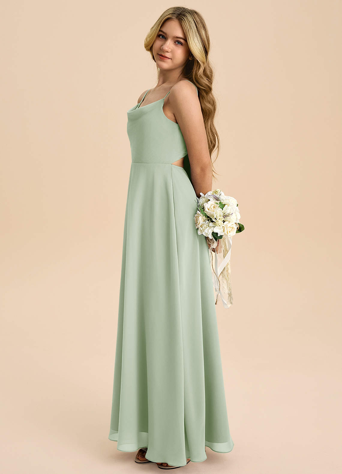 Robe Trapèze en Mousseline de soie Arc Vert Sauge