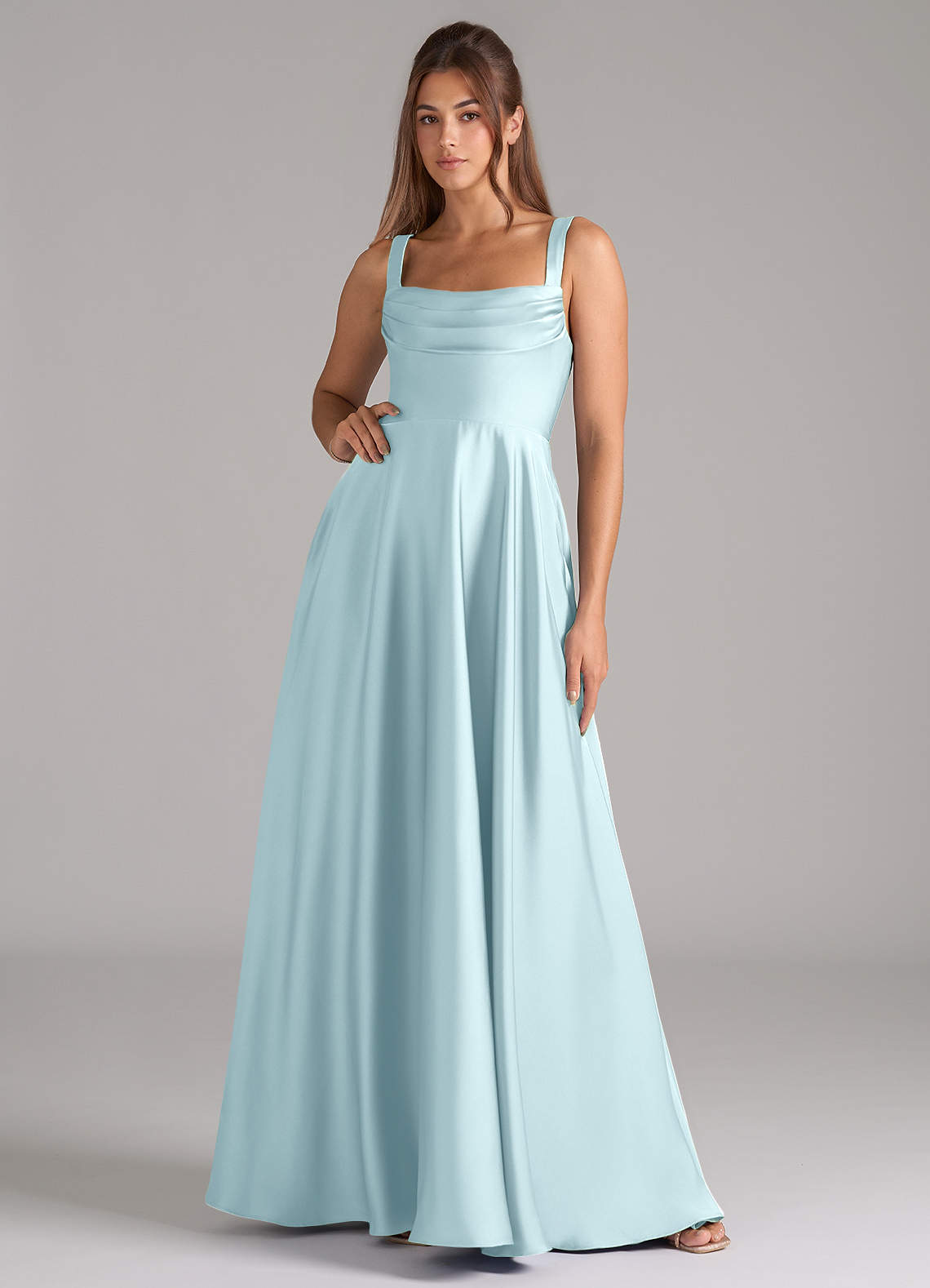 Robe Trapèze en Satin extensible Plissée Bleu Nuage